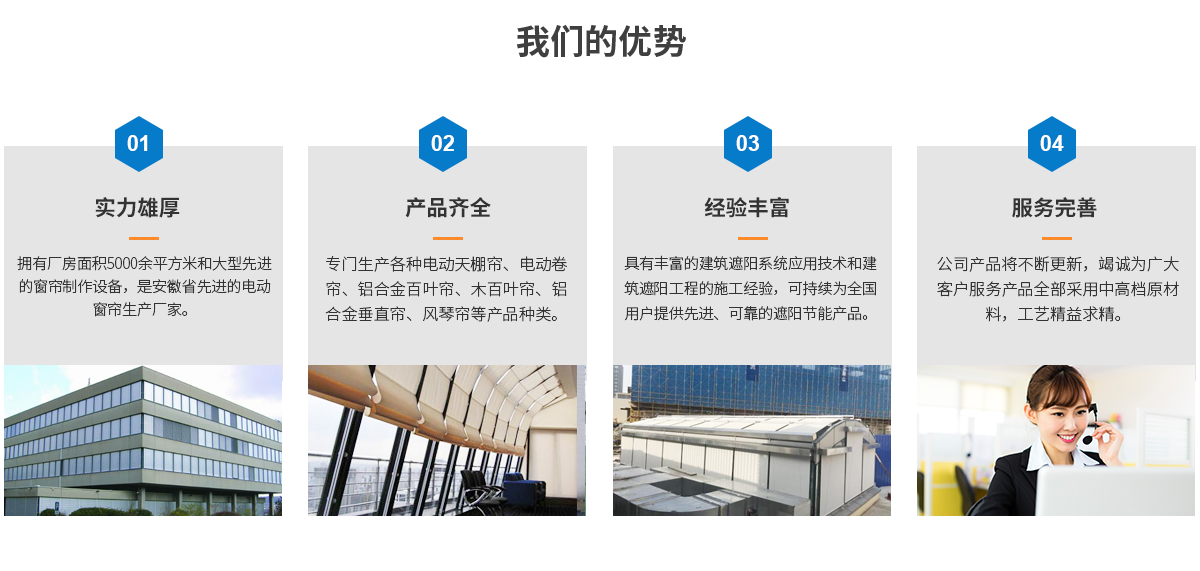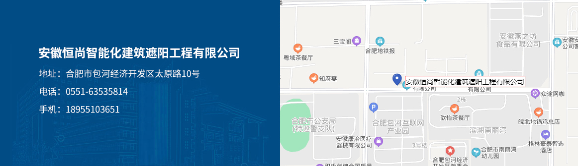 安徽恒尚智能化建筑遮陽工程有限公司是生產(chǎn)高品質(zhì)窗簾產(chǎn)品的專業(yè)公司。本公司擁有廠房面積5000余平方米,是安徽省先進的電動窗簾生產(chǎn)廠家,公司擁有大型先進的窗簾制作設備和專業(yè)的生產(chǎn)和安裝技術(shù)人員,并有著嚴密的管理和質(zhì)量體系,有效地保持了產(chǎn)品質(zhì)量。本公司具有豐富的建筑遮陽系統(tǒng)的應用技術(shù)和建筑遮陽工程的施工經(jīng)驗,可持續(xù)為全國用戶提供先進、專業(yè)的遮陽節(jié)能產(chǎn)品,可為建筑設計院和裝飾設計工程公司提供專業(yè)的建筑遮...